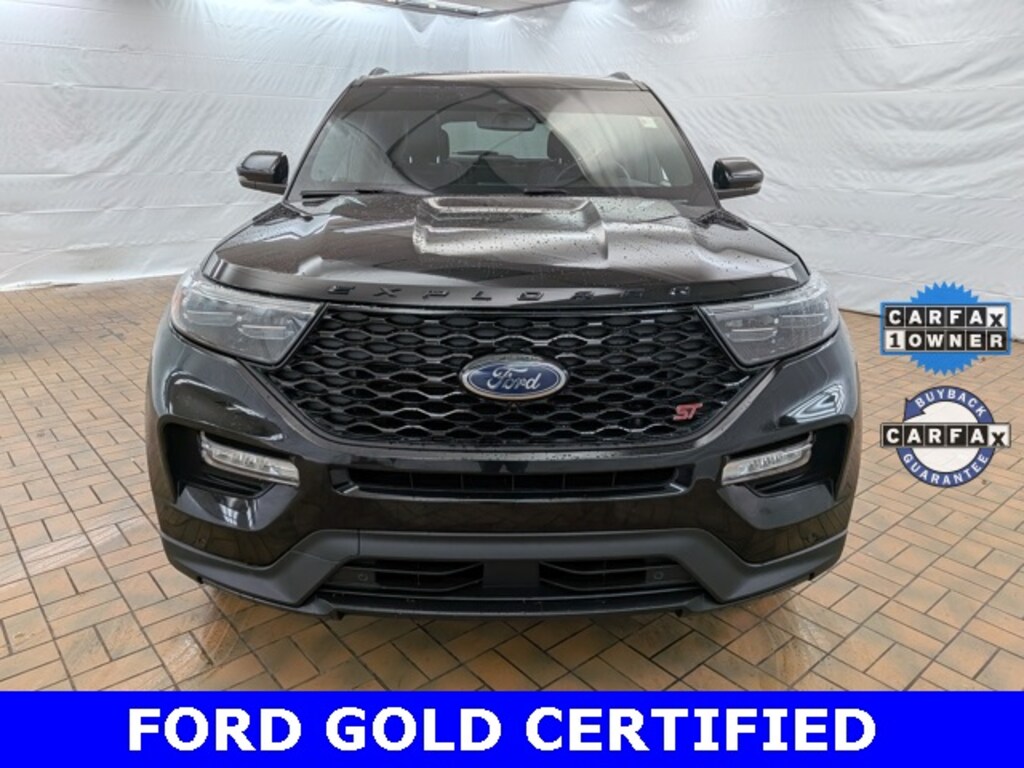 Recent Arrival! CARFAX One-Owner. Clean CARFAX. Ford Explorer LOCAL TRADE!, LOW MILES!, ONE OWNER VEHICLE!, 110V/150W AC Power Outlet, 360-Degree Camera w/Split View, Auto-Dimming Rearview Mirror (Interior), Brake assist, Electronic Stability Control, Equipment Group 401A, Evasive Steering Assist, Ford Co-Pilot360 Assist+, Front Parking Sensors, Front Rain-Sensing Wipers, Intelligent Adaptive Cruise Control, Memory Driver's Seat, Performance Front & Rear Brakes, Power Liftgate, Power Tilt/Telescoping Steering Column, Radio: B&O Sound System by Bang & Olufsen, Reverse Brake Assist, Second Row Heated Seats, Sideview Mirrors w/Gloss Black Caps, Speed Sign Recognition, ST High Package, ST Street Pack, Third Row PowerFold (Folds Flat), Twin Panel Moonroof, Universal Garage Door Opener (UGDO), Voice-Activated Touchscreen Navigation System, Wheels: 21" Aluminum, Wireless Charging Pad. 3.0L EcoBoost V6 4WD