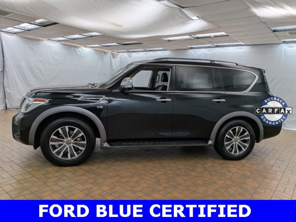 Clean CARFAX. Nissan Armada LOCAL TRADE!, LOW MILES!, 20" Painted Alloy Wheels, 2nd Row Captain's Chairs, 2nd Row Center Console w/Padded Armrest, 3rd Row Carpeted Floor Mats - Captain Seat, Alloy wheels, Axle Ratio: 2.94, Blind Spot Warning, Captain's Chairs Package, Driver door bin, Driver vanity mirror, Exterior Parking Camera Rear, Front reading lights, Garage door transmitter: HomeLink, Heated door mirrors, Heated Front Bucket Seats w/Power Driver's Memory, Heated front seats, Illuminated entry, Intelligent Back-Up Intervention (I-BI), Intelligent Distance Control (I-DC), Leather-Appointed Seat Trim, Navigation System, Passenger door bin, Power door mirrors, Power Liftgate, Power passenger seat, Power Sliding Moonroof w/Front Tilt & Rear Slide, Premium Package, Rear Cross Traffic Alert (RCTA), Reclining 3rd row seat, Split folding rear seat, Spoiler, Tilt steering wheel, Turn signal indicator mirrors. 5.6L V8 4WD