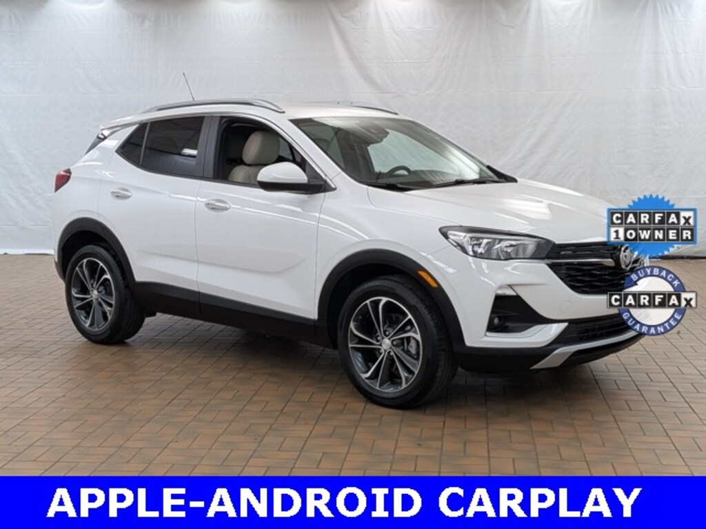 Recent Arrival! CARFAX One-Owner. Clean CARFAX. Buick Encore GX LOCAL TRADE!, LOW MILES!, ONE OWNER VEHICLE!, 18" Machined Aluminum Wheels, 2 USB Ports w/Auxiliary Input Jack, 2-Way Power Driver Lumbar Control, 4-Way Manual Passenger Seat Adjuster, Alloy wheels, Brake assist, Bumpers: body-color, Cloth w/Leatherette Seat Trim, Electronic Stability Control, Enhanced Performance 6-Speaker System, Front Bucket Seats, Front License Plate Bracket, Hands Free Power Liftgate, Hands-Free Power Liftgate Package, Heated door mirrors, Lane Change Alert w/Side Blind Zone Alert, Power door mirrors, Power driver seat, Power steering, Power windows, Preferred Equipment Group 1SD, Radio: 8" Diagonal Buick Infotainment System, Rear Cross Traffic Alert, Remote keyless entry, Ride & Handling Suspension, Safety Package II, SiriusXM Radio, Speed control, Speed-sensing steering, Spoiler, Steering wheel mounted audio controls, Traction control, Wireless Apple CarPlay/Wireless Android Auto. ECOTEC 1.2L Turbo FWD Priced below KBB Fair Purchase Price!