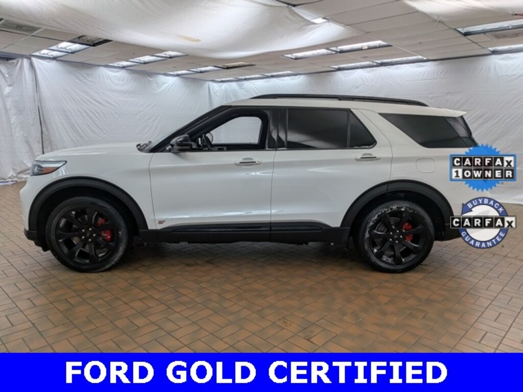 Recent Arrival! CARFAX One-Owner. Clean CARFAX. Ford Explorer LOCAL TRADE!, LOW MILES!, ONE OWNER VEHICLE!, 10.1" LCD Capacitive Portrait Touchscreen, 110V/150W AC Power Outlet, 2 Additional Speakers, 360-Degree Camera w/Split View, Alloy wheels, Auto-Dimming Rearview Mirror (Interior), Cargo Area Management System, Equipment Group 401A, Evasive Steering Assist, Ford Co-Pilot360 Assist+, Front & Rear Carpet Floor Mats, Front Parking Sensors, Front Rain-Sensing Wipers, Intelligent Adaptive Cruise Control, Leather Seating Surface Sprt Captain's Chairs, Memory Driver's Seat, Passenger door bin, Performance Front & Rear Brakes, Power Tilt/Telescoping Steering Column, Radio: B&O Sound System by Bang & Olufsen, Reverse Brake Assist, Second Row Heated Seats, Sideview Mirrors w/Gloss Black Caps, Speed Sign Recognition, ST Appearance Package, ST High Package, ST Street Pack, Technology Package, Third Row PowerFold (Folds Flat), Twin Panel Moonroof, Universal Garage Door Opener (UGDO), Voice-Activated Touchscreen Navigation System, Wheels: 21" Aluminum, Wireless Charging Pad. 3.0L EcoBoost V6 4WD