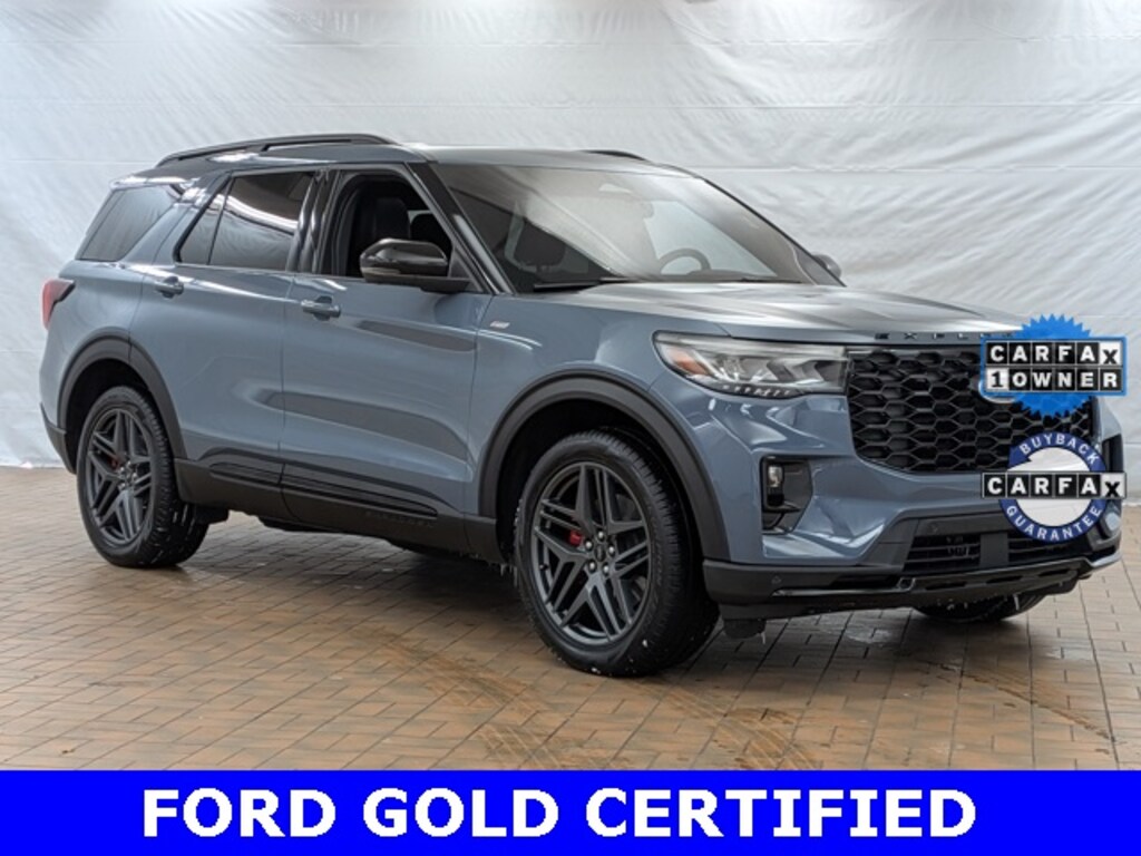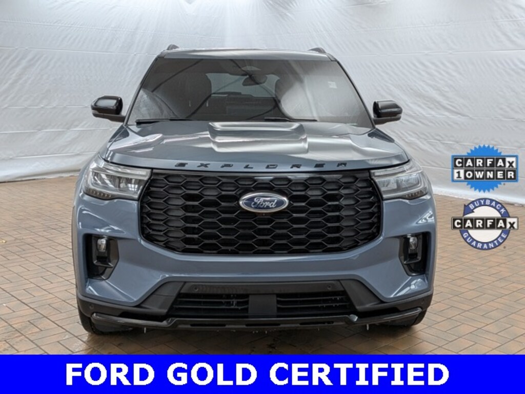 Recent Arrival! CARFAX One-Owner. Ford Explorer LOCAL TRADE!, LOW MILES!, ONE OWNER VEHICLE!, 110V/150W AC Power Outlet, 2nd Row Heated Seats, Ambient Lighting, Auto-Dimming Interior Rear-View Mirror, Equipment Group 300A Standard Package, Memory Driver's Seat, Navigation System, Panoramic Vista Roof w/Power Shade, Performance Brakes, Power Liftgate, Power-Folding Sideview Mirrors w/Autofold, Premium Package, Rain-Sensing Wipers (Front Only), Red Painted Perf Front & Rear Brake Calipers, Speed control, ST-Line Street Pack, Wheels: 21" Magnetite-Painted Aluminum, Wireless Charging Pad. 2.3L EcoBoost I-4 4WD