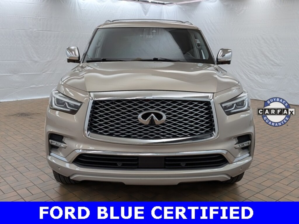 Recent Arrival! Clean CARFAX. INFINITI QX80 LOCAL TRADE!, 120V Power Outlet, 22" Wheel Package, Advanced Climate Control System, All-Season Floor Mats, All-Season Package, Alloy wheels, Auto High-beam Headlights, Backup Collision Intervention (BCI), Blind Spot Intervention (BSI), Blind Spot Warning, Bose Cabin Surround Sound System, Cargo Area Mat, Cargo Package, Charcoal/Espresso Burl Trim, Chrome Outside Mirror Caps, Climate-Controlled Front Seats, Delay-off headlights, Dual 8" Color Monitors, First-Aid Kit, Front fog lights, Fully automatic headlights, Heated 2nd-Row Seats, High-Density Non-Slip Rear Cargo Carpet, Intelligent Cruise Control (Full-Speed Range), Lane Departure Warning System, Navigation system: INFINITI InTouch Navigation, Nylon-Cord Cargo Net, Power Liftgate, Power moonroof, ProASSIST Package, Semi-Aniline Leather-Appointed Seating w/Quilting, Sensory Package, Theater Package, Wheels: 22" x 8.0" 14-Spoke Forged Aluminum-Alloy, Wireless Headphones (2). 5.6L V8 4WD