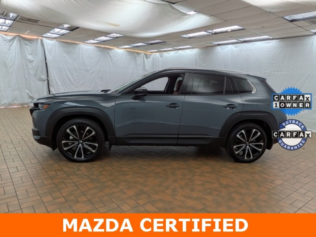 Recent Arrival! Clean CARFAX. Mazda CX-50 LOCAL TRADE!, LOW MILES!, ONE OWNER VEHICLE!, All-Weather Floor Mats, AppLink/Apple CarPlay and Android Auto, Auto High-beam Headlights, Auto-dimming Rear-View mirror, Brake assist, Bumpers: body-color, Cargo Liner w/Seatback Protection, Compass, Delay-off headlights, Driver door bin, Driver vanity mirror, E911 Automatic Emergency Notification, Electronic Stability Control, Exterior Parking Camera Rear, Front & Rear Splash Guards, Front reading lights, Fully automatic headlights, Garage door transmitter: HomeLink, Heated door mirrors, Heated steering wheel, Illuminated entry, Leather Shift Knob, Leather steering wheel, Navigation system: MAZDA CONNECT, Polymetal Gray Metallic Paint Charge, Power door mirrors, Power Liftgate, Power moonroof, Roadside Assistance Kit, Speed control, Spoiler, Turn signal indicator mirrors, Weather Package. 2.5L I4 Turbocharged DOHC 16V LEV3-ULEV70 227hp AWD